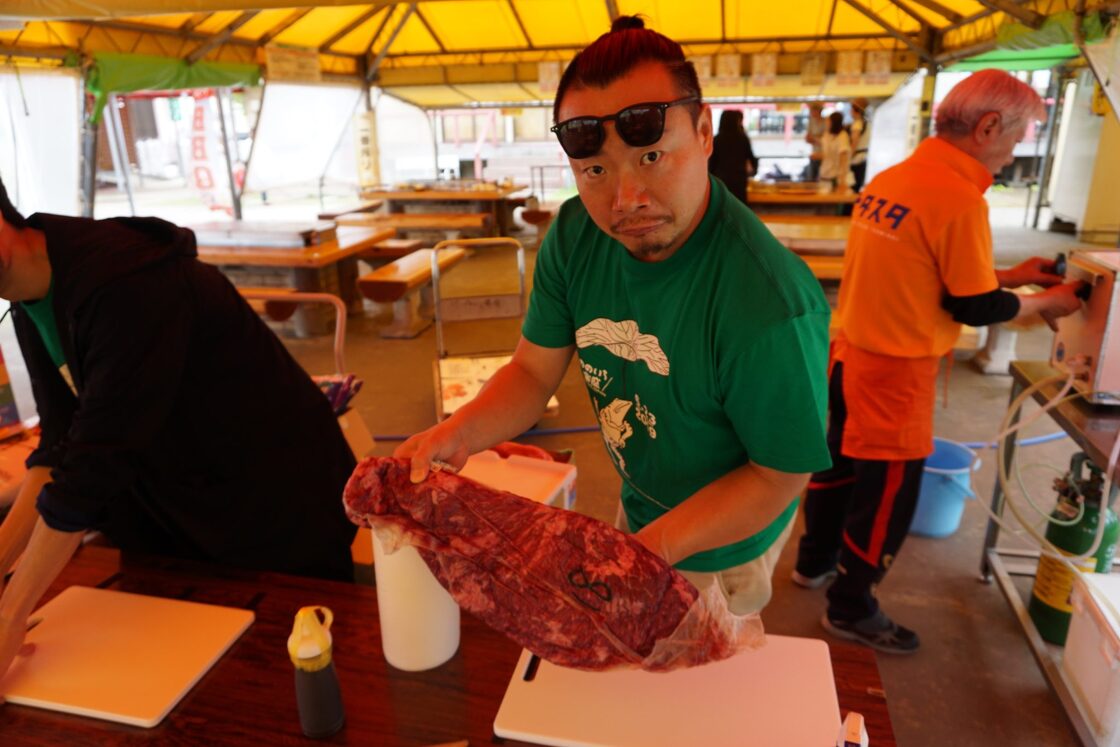 金沢駅前「やきにくのうら」店長による肉パフォーマンス。最高にうまかったです。