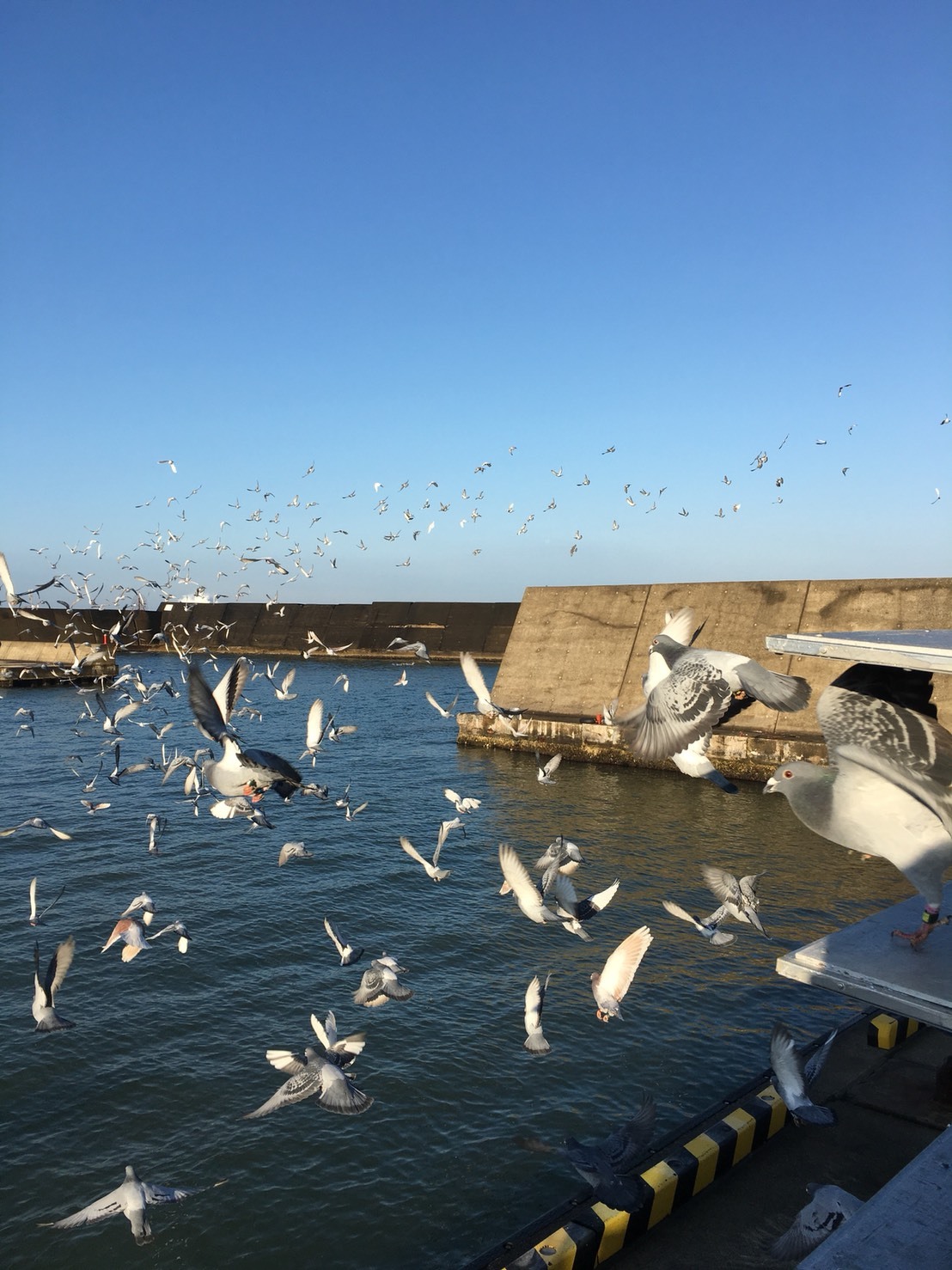 そうです。『鳩』です。 ちなみに写真はレース鳩を放った瞬間の写真です。新潟県で飛びたった鳩が数時間後に石川県まで戻ってきます。帰巣本能はすごいですね。太陽の位置を確認しながら戻ってくるそうです。 運ぶ時は生き物ですからとても気を使います。当社はこんなモノも運んでいるんです。