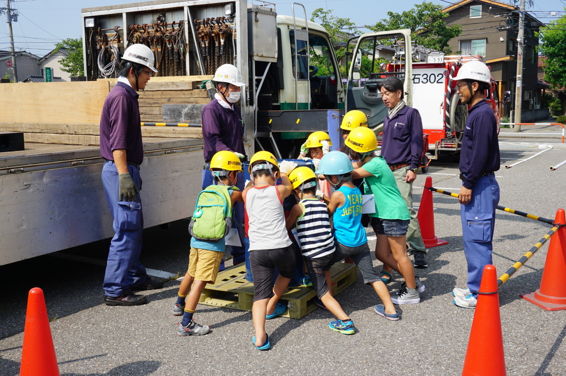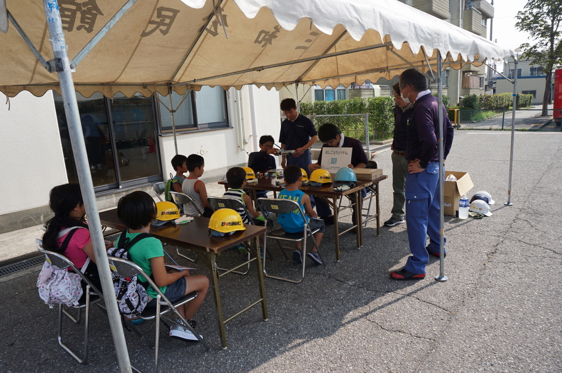 2016年8月7日、『金沢おしごとたいけん』が開催されました。金沢おしごとたいけんは金沢市の三和児童館さんが主体となって行っている行事です。20種類以上の業種が集まる中、昨年に引き続き当社は運送業として参加させていただきました。
