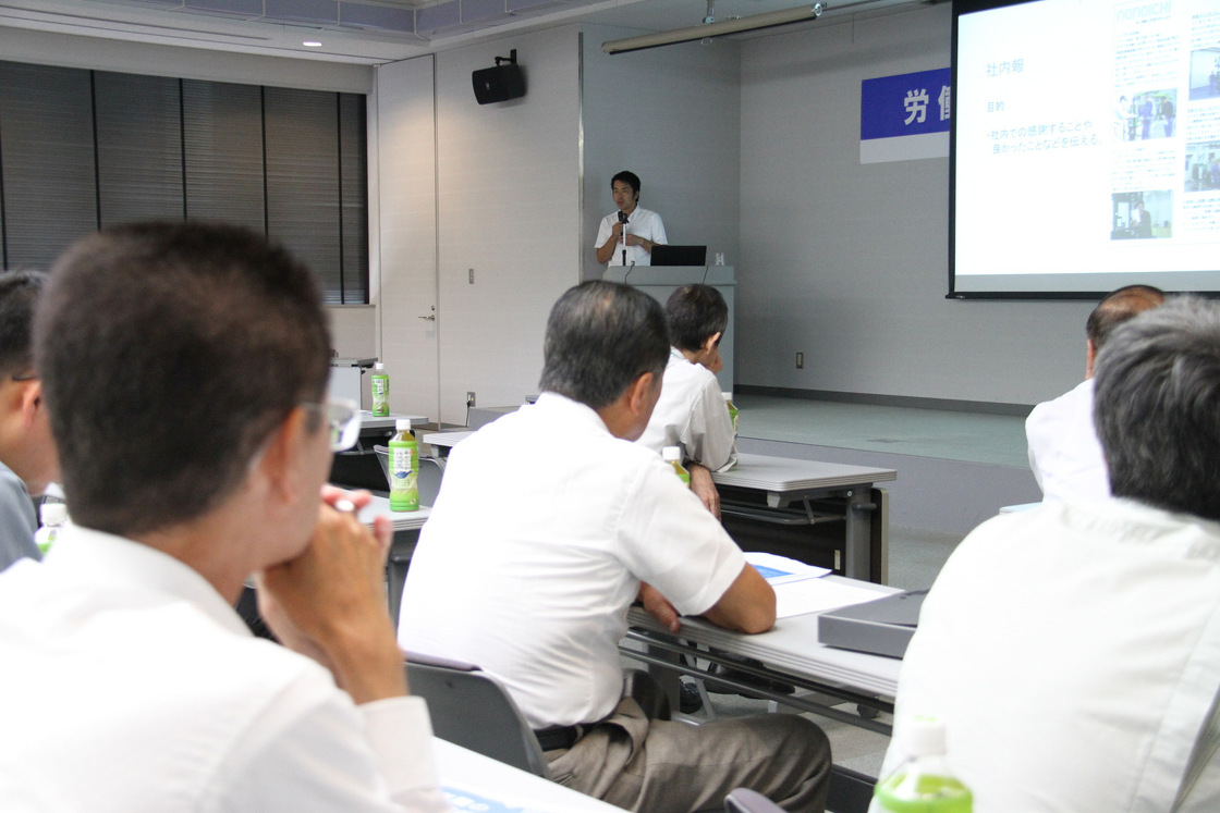 7月12日、石川県トラック協会にて行われた労働力確保対策セミナーにて当社の取り組みを発表させていただきました。トラック運送事業者の方が40~50名参加されていました。