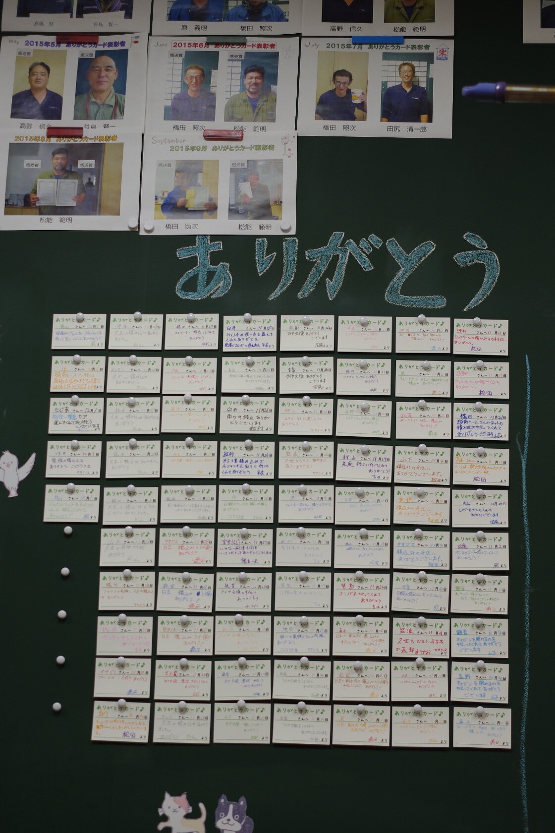 ※休憩室の黒板にありがとうカードが貼りだされています。