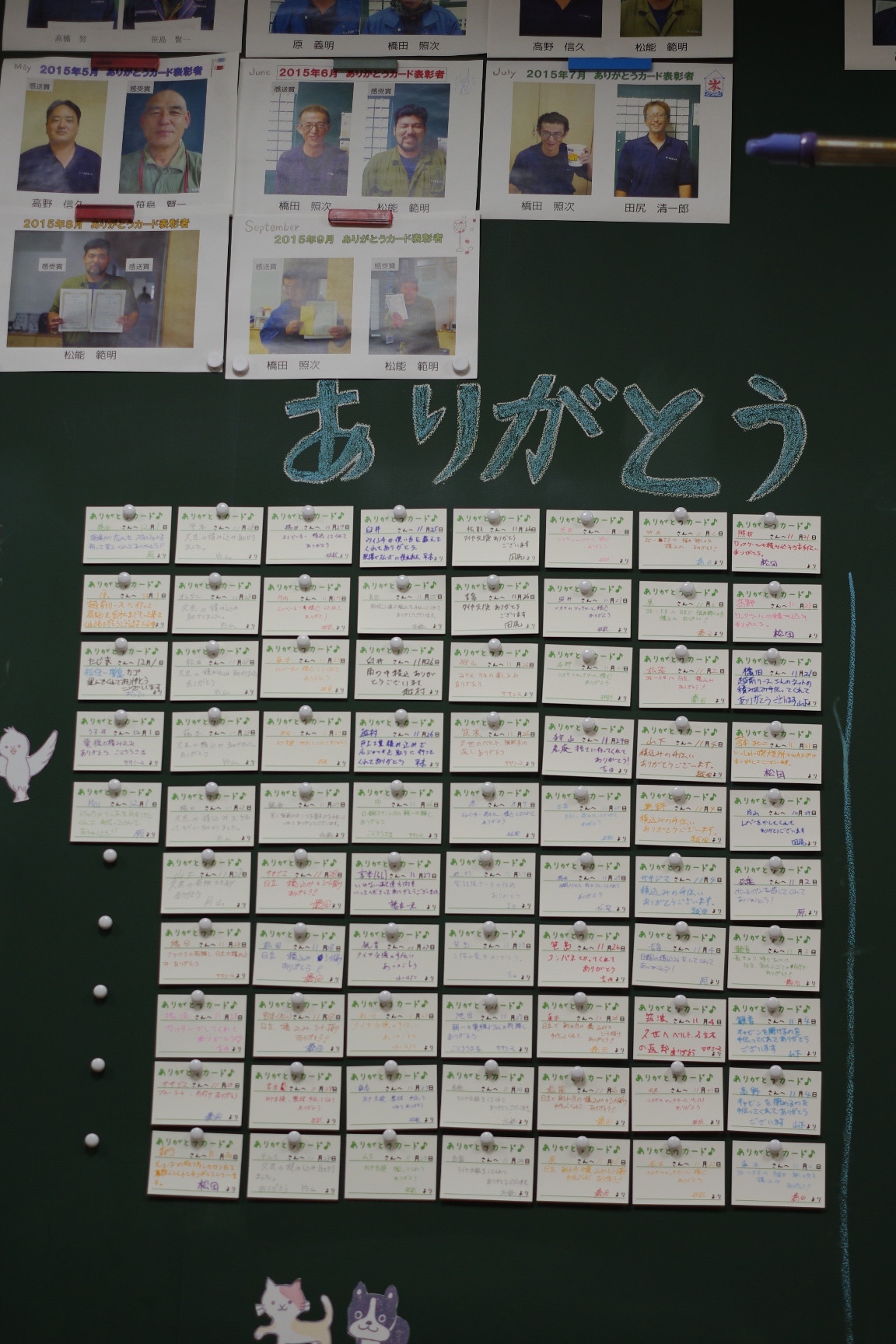 話の内容としては、自分自身のターニングポイントとなった石川県中小企業家同友会で経営指針成文化講座を受講して会社の経営指針をつくったことやISICOさんの専門家派遣の制度を利用させていただいて当社を現在コンサルティングしてくれている㈱アップライトラーニングの上野昭代さんに出会ったこと、そして現在社内で行っている『感動の共有』や『ありがとうカード』などの取り組みについて説明を致しました。