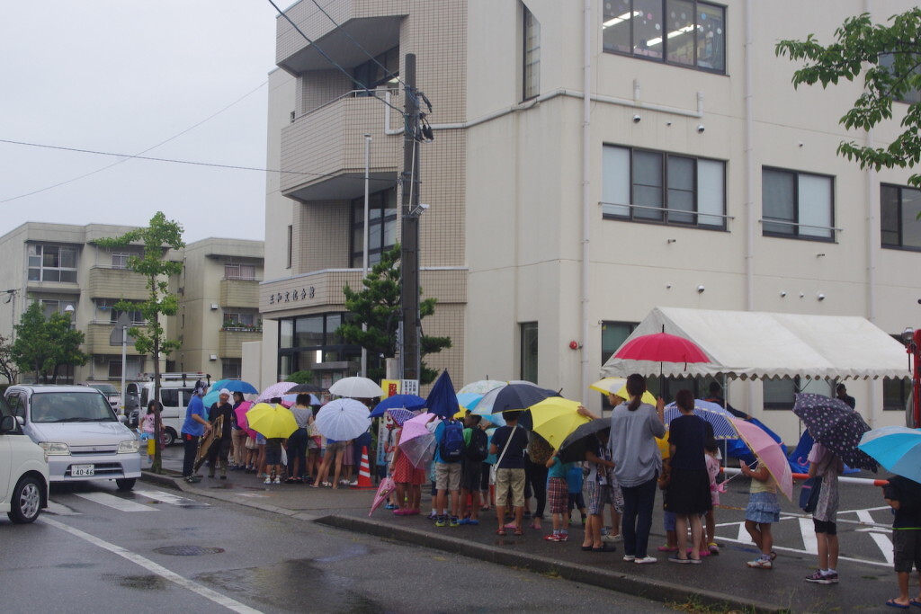 おしごとたいけん当日、朝から雨が降り、小学生がきてくれるのだろうかと思いながら会場の準備をしていたら、会場30分前にもかかわらず児童館の前には50名以上の行列ができていました。これにはテンションが上がります。