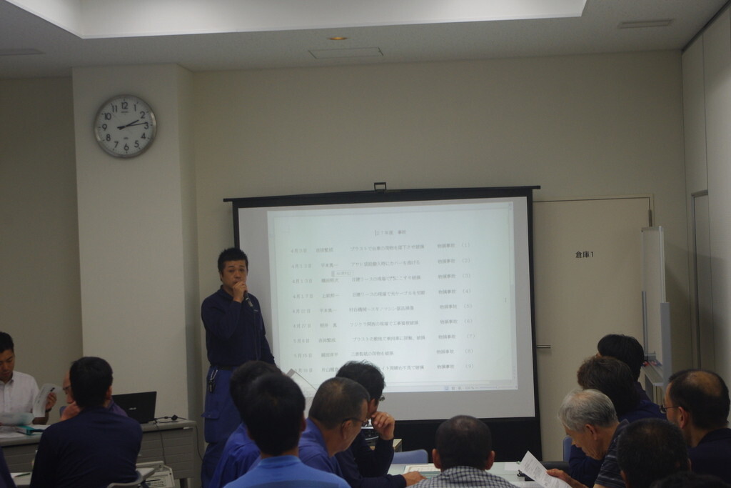 吉畠部長から事故情報の説明です。みんなで共有し再発防止に努めます。