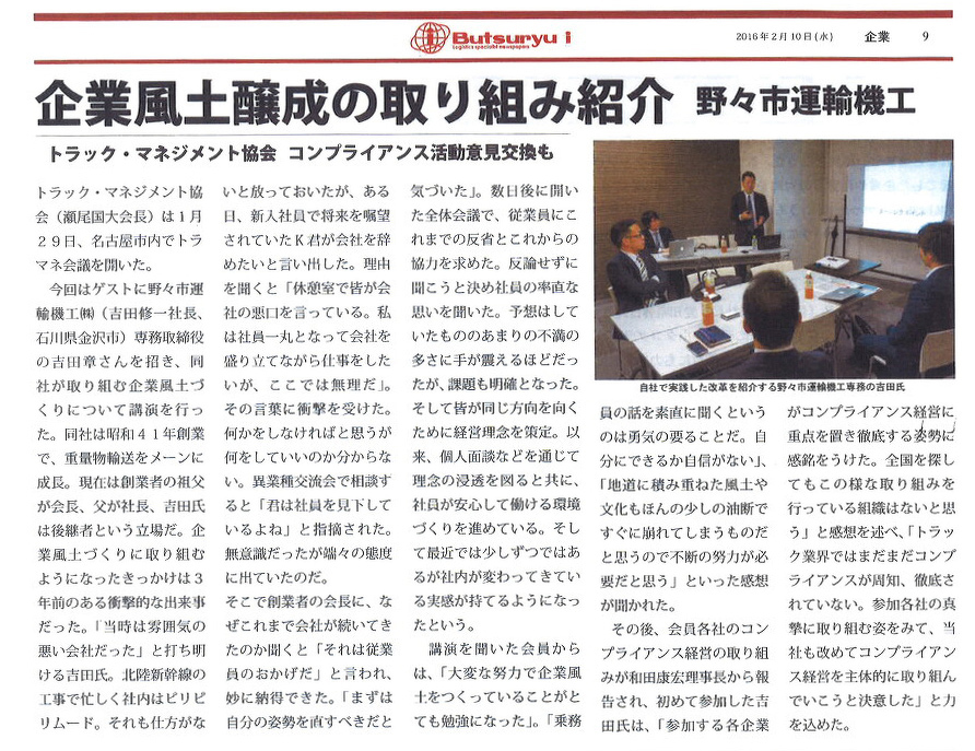 物流系の新聞Butsuryu iに当社の取り組みの記事が掲載されました。