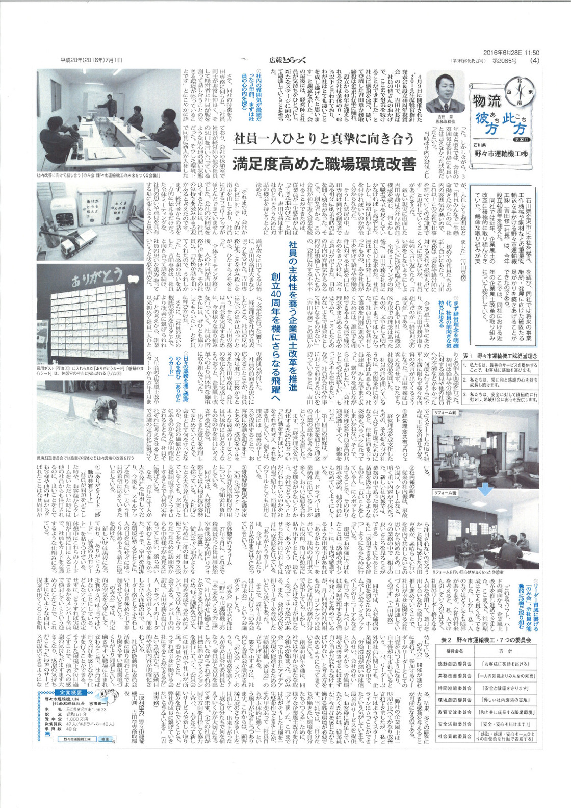 2016年7月15日、全日本トラック協会が発行している全国紙「広報とらっく」に当社の記事が掲載されました。
