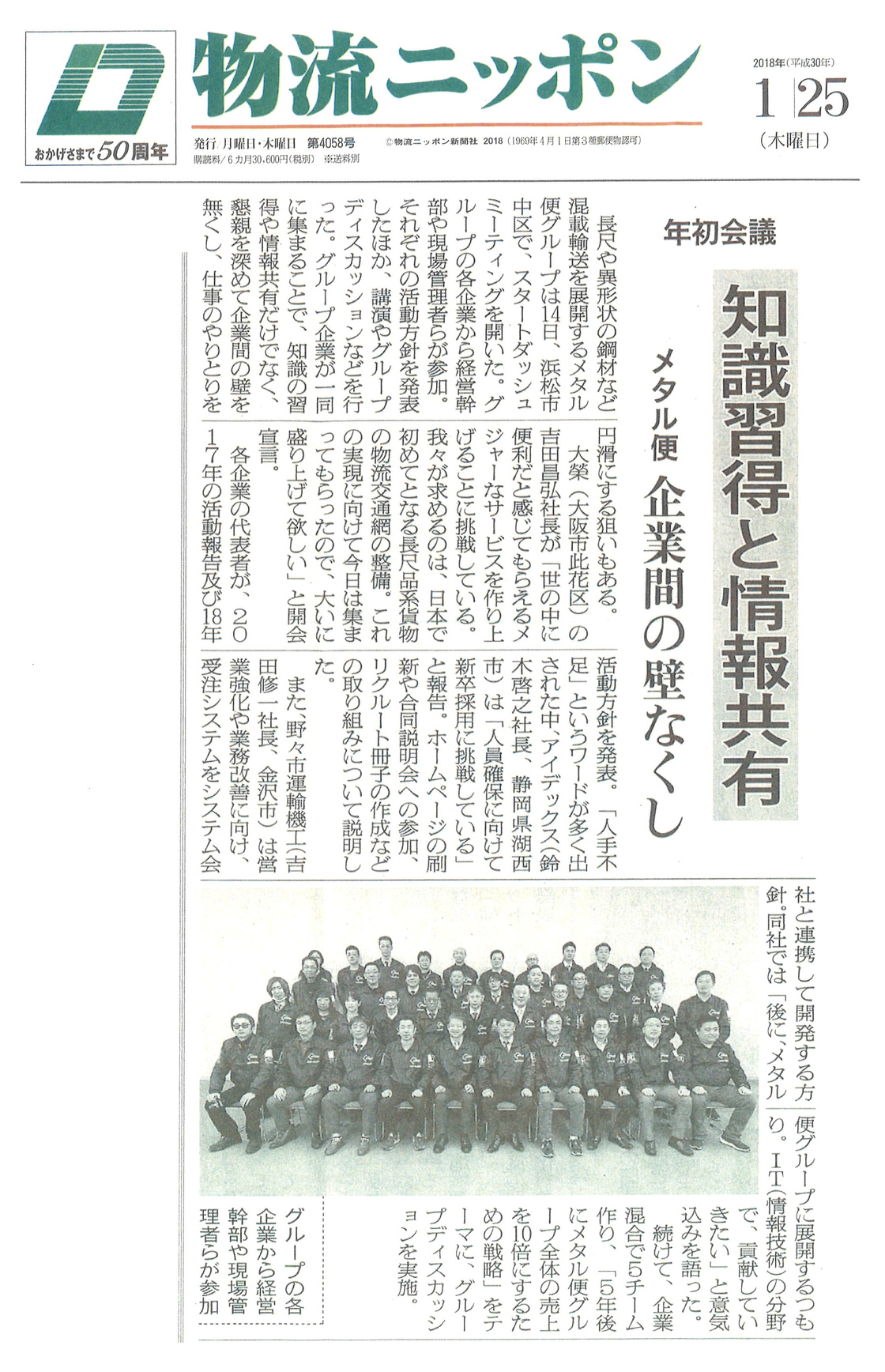 2018年1月25日、メタル便グループで毎年行われているスタートダッシュミーティング2018の記事が掲載されました。