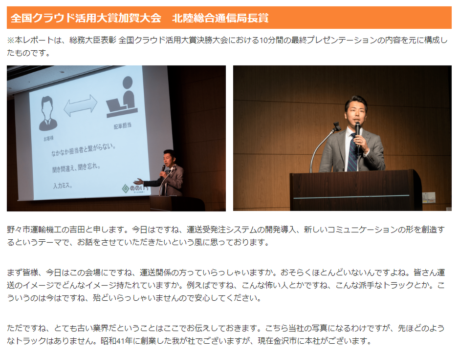 2018年 全国クラウド活用大賞 北陸総合通信局長賞 を受賞しました。