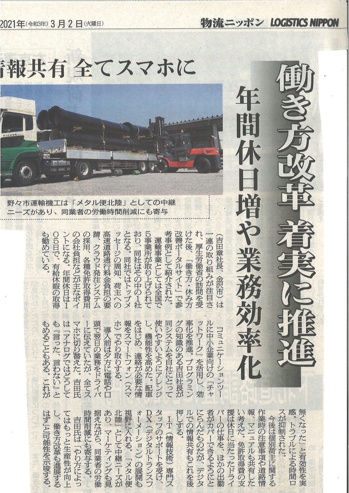 「働き方改革 着実に推進」 当社では様々な取り組みにより休みやすい環境、働きやすい環境をみんなでつくっています。