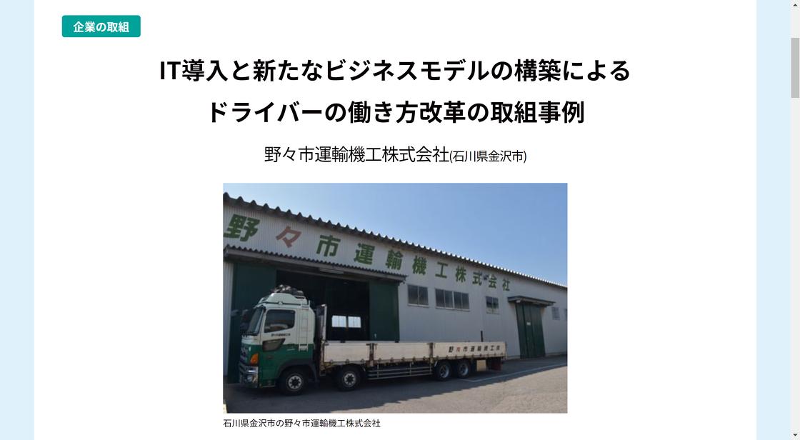 IT導入と新たなビジネスモデルの構築によるドライバーの働き方改革の取組事例