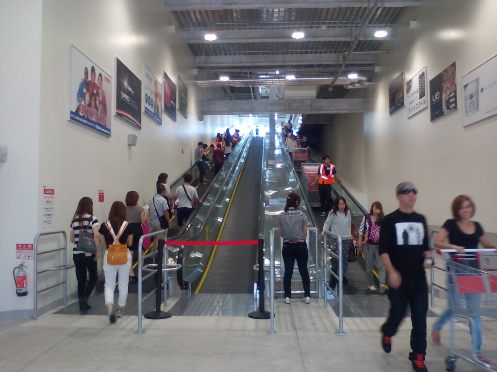車をとめ2Fの駐車場から1Fの入り口へ降りるのにエスカレーターに乗りました。